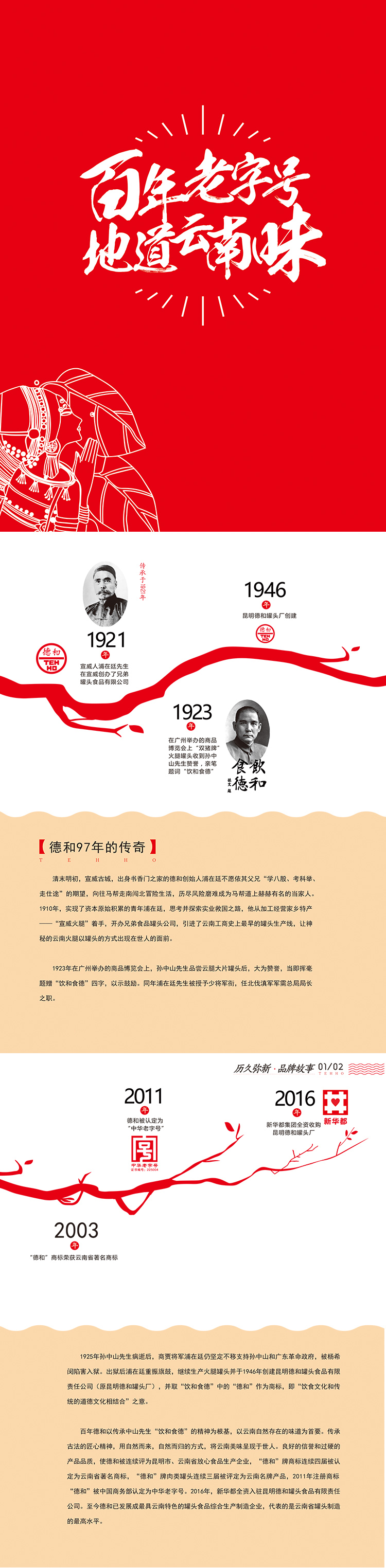 歷經(jīng)百年發(fā)展,德和現(xiàn)已形成集生產(chǎn)、加工、銷售為一體的綜合性食品企業(yè),主營云腿午餐肉罐頭、云腿罐頭、生鮮食品、香腸臘肉、調(diào)味醬、家常菜、烘焙糕餅、休閑食品、節(jié)慶食品等近兩百種產(chǎn)品。德和憑借原料好、品質(zhì)優(yōu)、味道佳的產(chǎn)品質(zhì)量,贏得了眾多消費(fèi)者的喜愛和信賴,是云南家喻戶曉的知名品牌。
